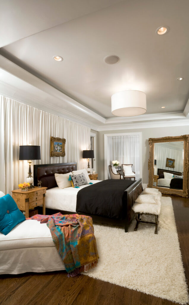Chandeliers are a beautiful lighting option to add to your ceiling. Other lighting ideas include recessed, pendant, cove, or rope lighting, which are a little more subtle than chandeliers. LED strips are another popular lighting choice. Tray ceilings are the perfect place to incorporate more lighting into a room without any visible light fixtures.